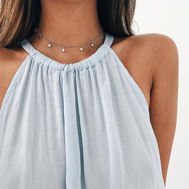 Occassion: Party Boho Chocker Gold Color Chain Tassel Star Choker Necklace
